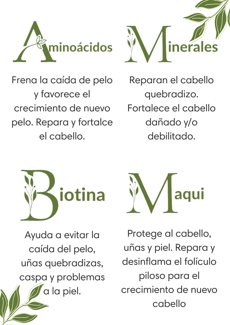 Aporta aminoácidos esenciales para frenar la caída del cabello y favorecer el crecimiento de nuevo cabello.